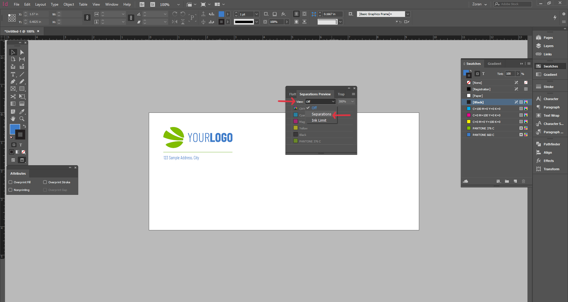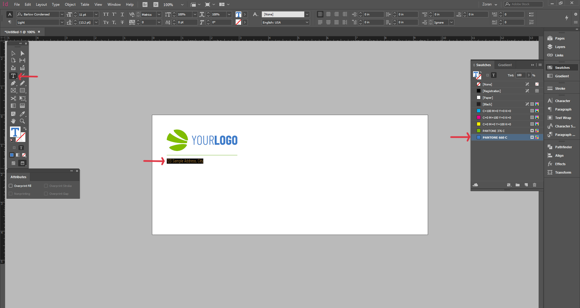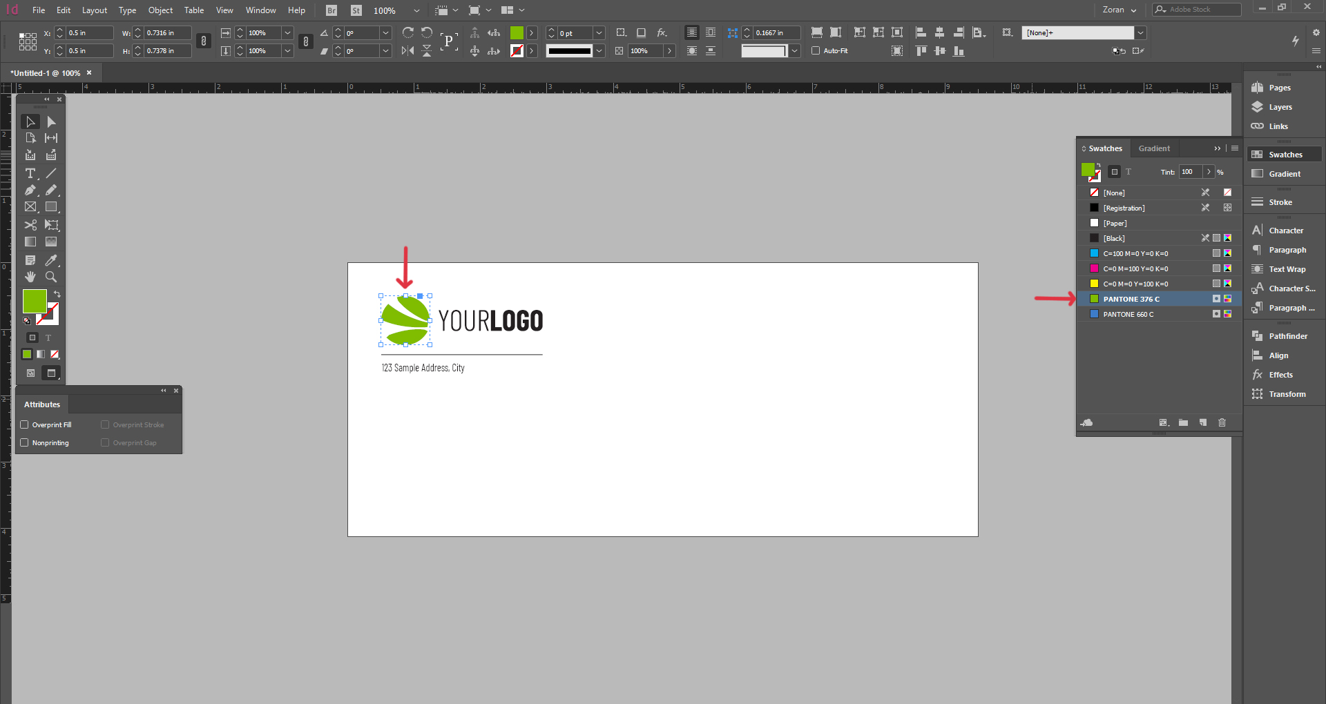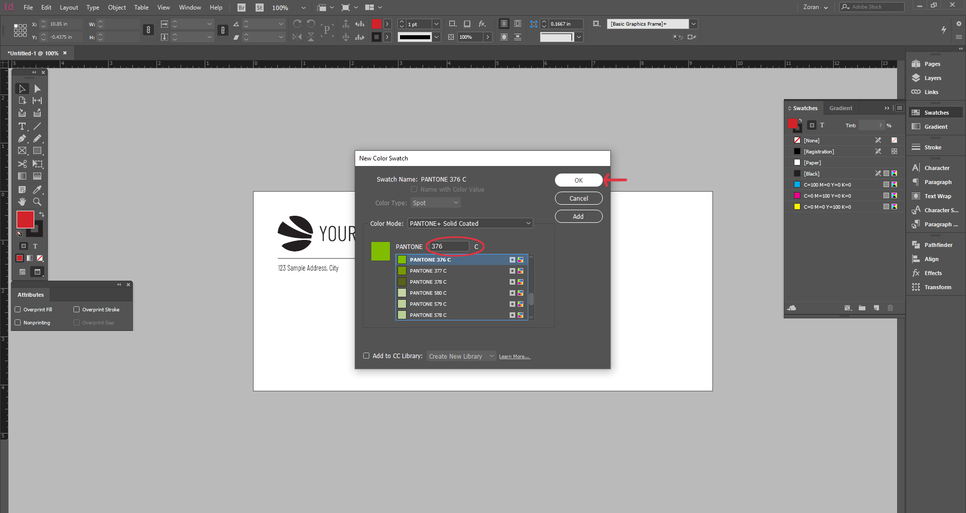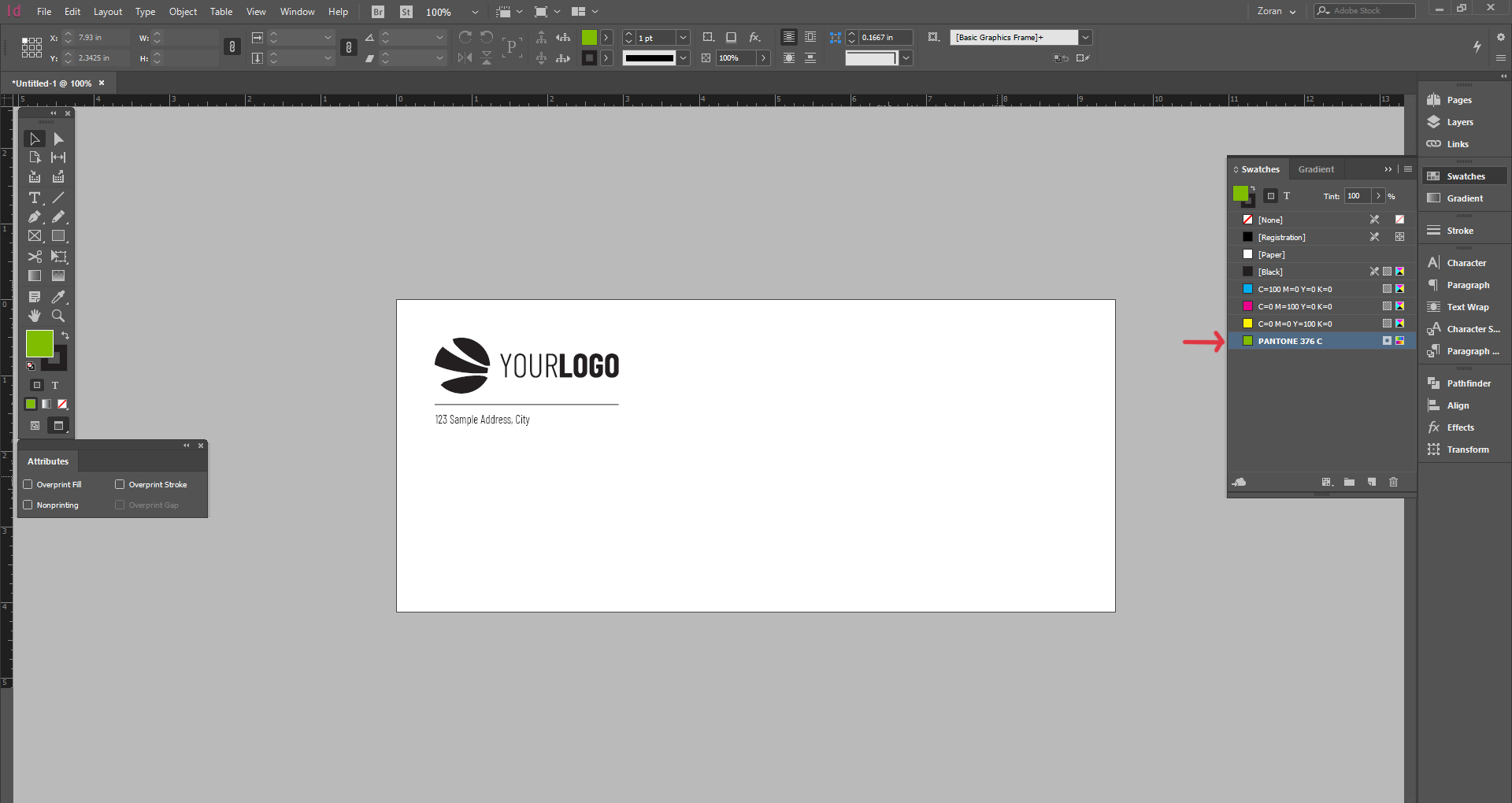 Repeat the same step if you want to add a Pantone colour to text, only this time make sure you highlight the text first using the Type Tool.